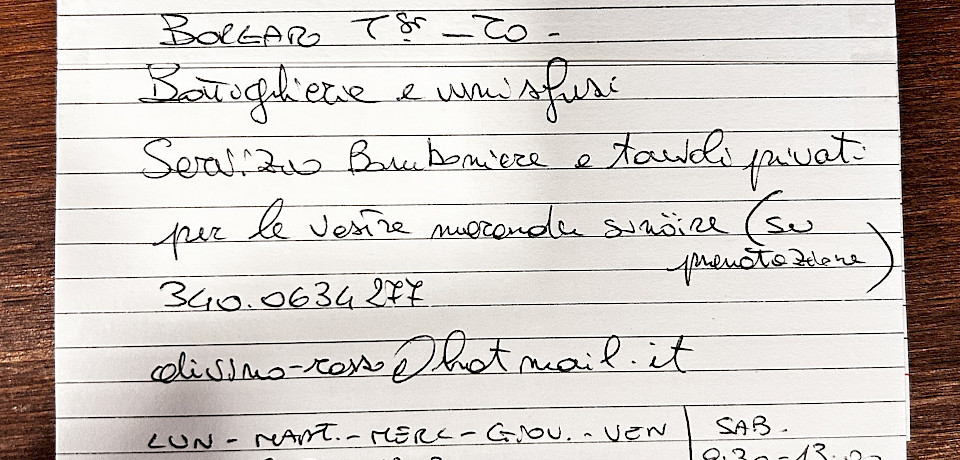 Sabato: 09:30 – 13:00 | 16:15 – 19:30